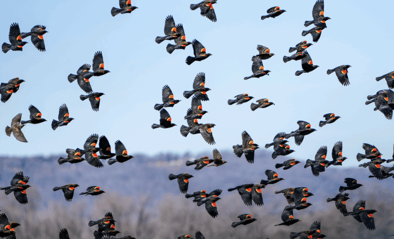 Migrating Red-winged Blackbirds by anonymous / Macaulay Library.