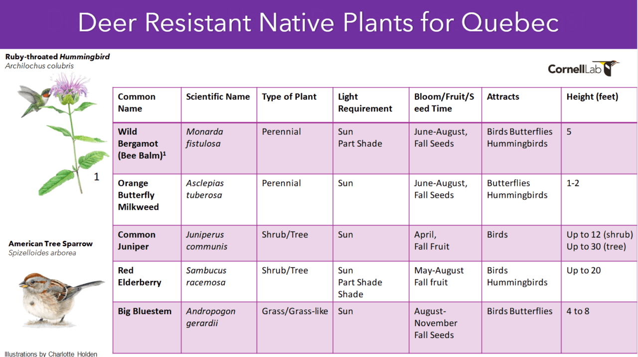Please note these lists are not exhaustive, there are other native plants that have deer resistance.